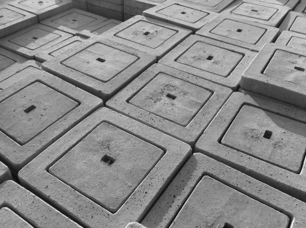 Coperchi in calcestruzzo vibrocompresso a chiusura di pozzetti a sezione quadrata, costituiti da telaio e relativo sigillo di ispezione.