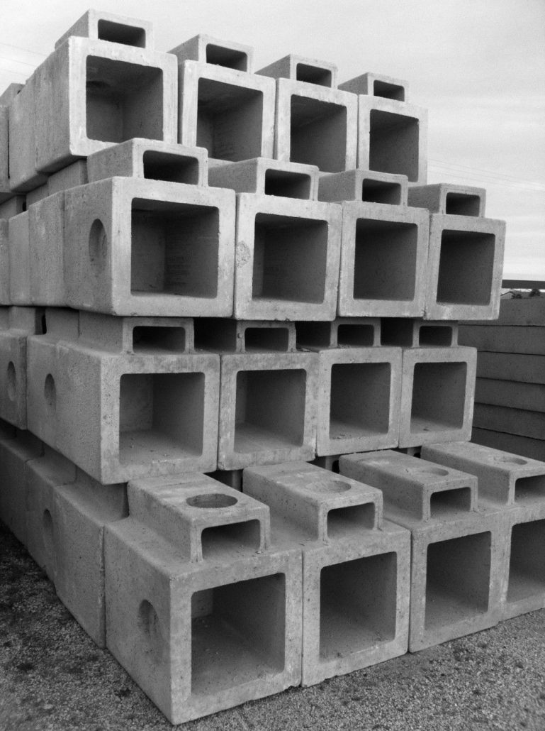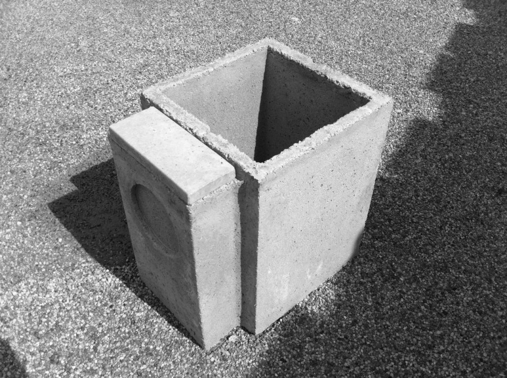Pozzetti d’ ispezione prefabbricati in calcestruzzo vibrocompresso, a sezione quadrata, con alle pareti impronte a “mezzo spessore” per permettere l’ allacciamento dei tubi e muniti di vano sifone.