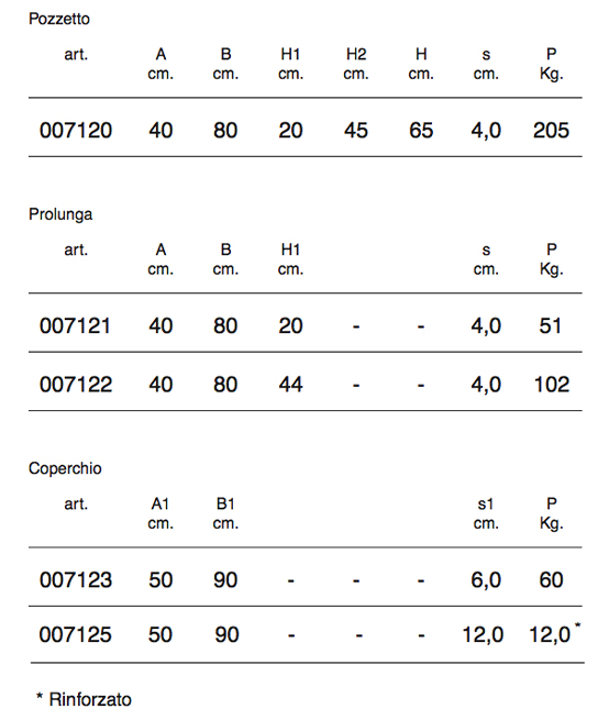 Sono diponibili prolunghe di rialzo e coperchi del tipo pedonabile o carrabile.